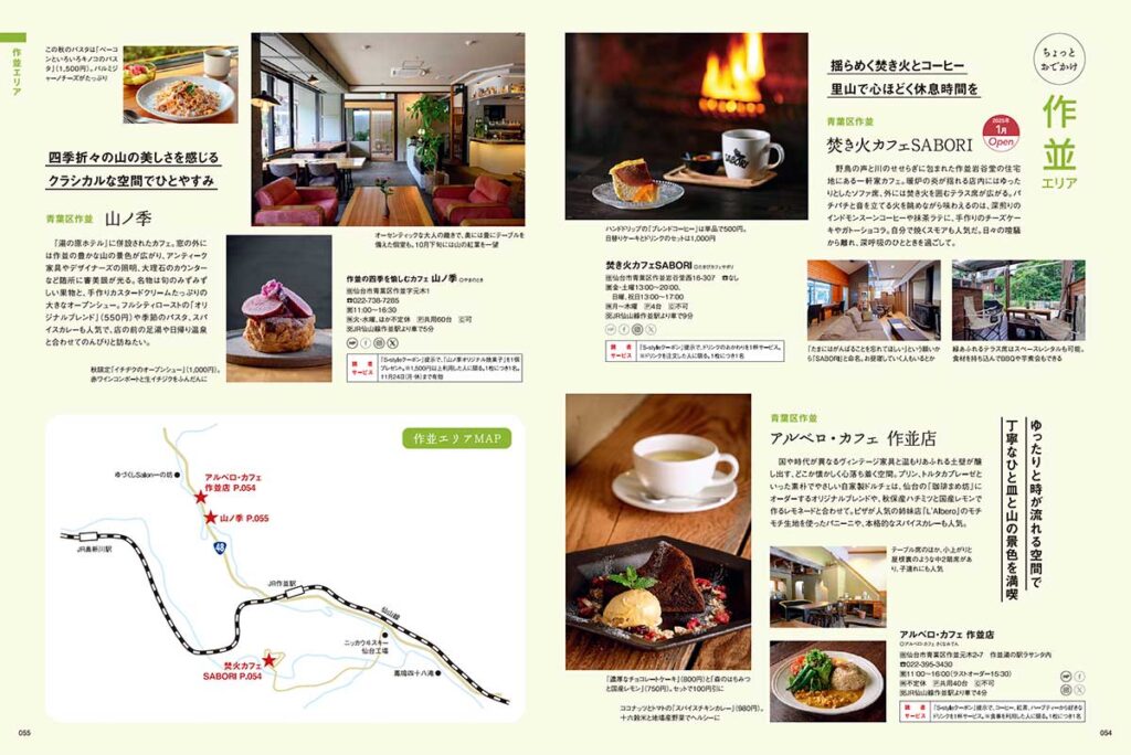 仙台市中心部のSENDAI CAFE MAPや近郊のエリアマップもあり、使い勝手抜群です。