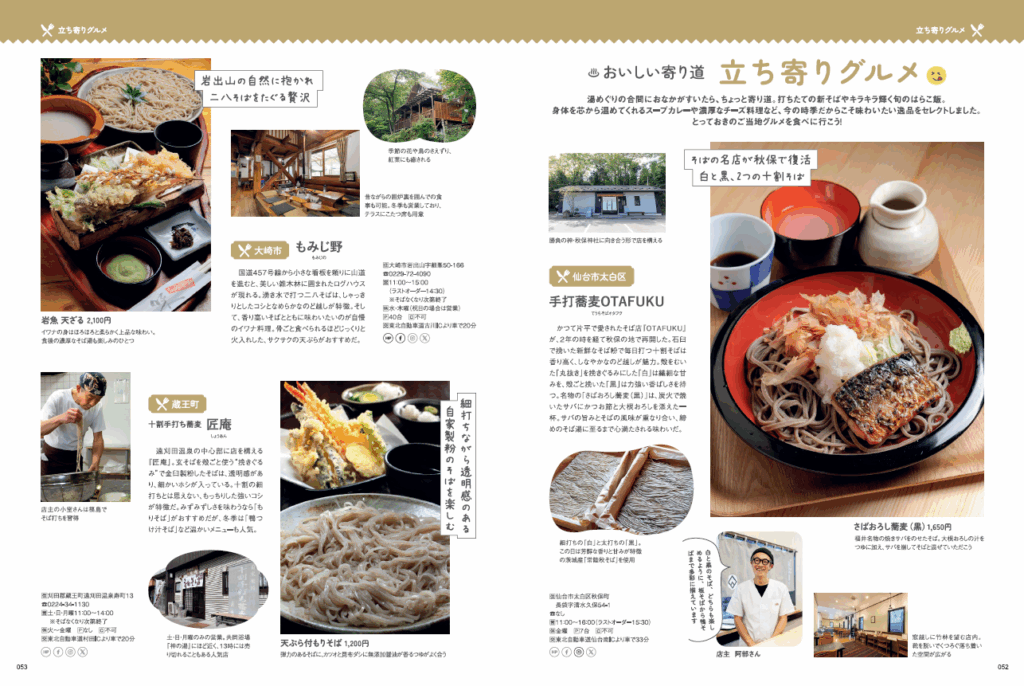 巻頭特集「宮城日帰り温泉&立ち寄りグルメ 心ほどける湯めぐり旅」