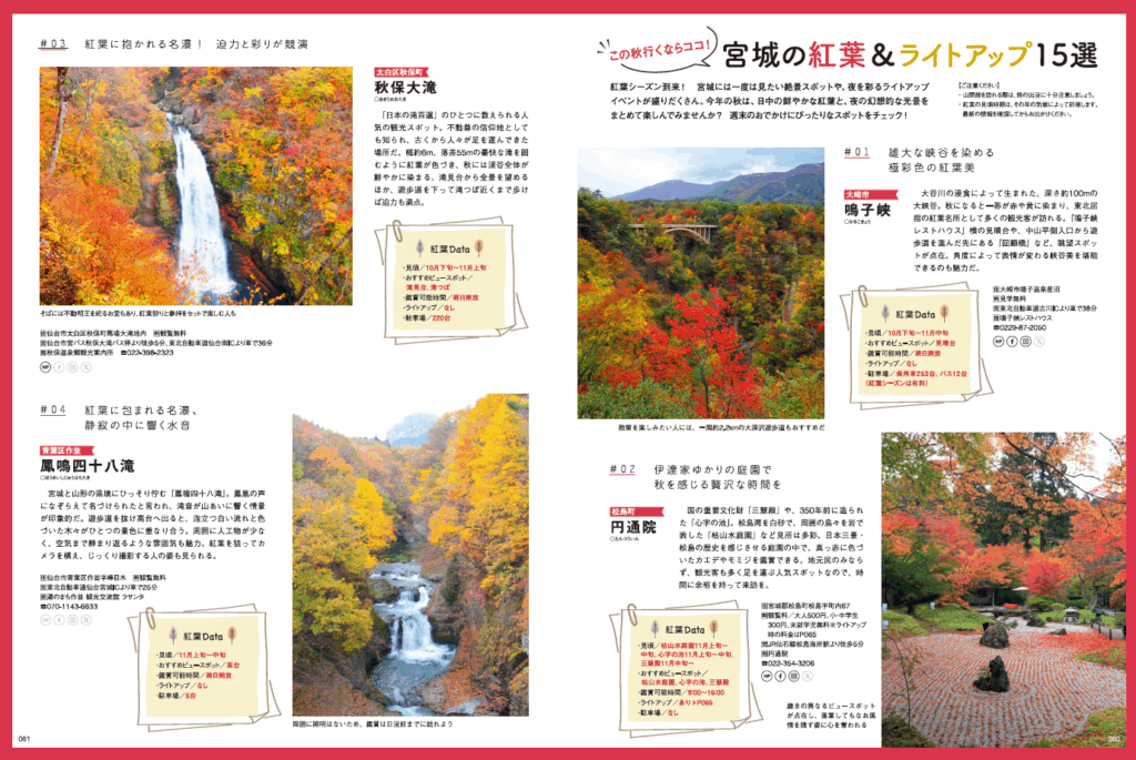 第2特集では、紅葉シーズン到来!ということで、宮城の紅葉スポットを美しい写真と共にご紹介。