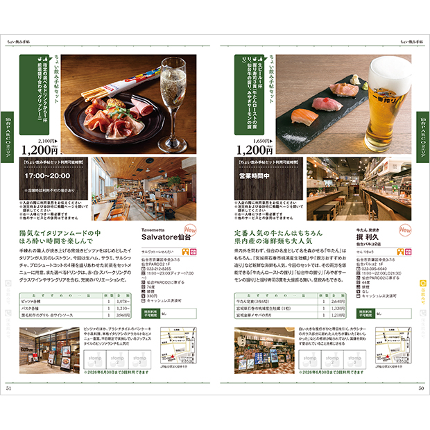 参加店舗のエリアは、仙台駅東口~西公園、北仙台~五橋、長町と使い勝手抜群。