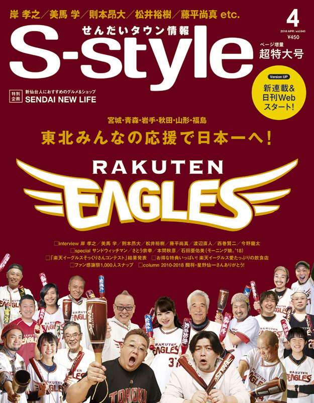 4月3日(火)のホーム開幕戦を記念して、『せんだいタウン情報 S-style』4月号販売会を開催します。『楽天生命パーク宮城』すぐ近くの『デイリーヤマザキ仙台宮城野店』にて実施。まだS-style4月号をGETしていない方はぜひこの機会にお求めください。