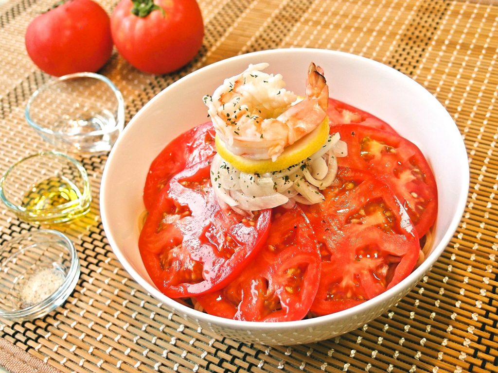 もともとヘルシーで健康食なイメージのある蕎麦に、さらに身体想いな食材「お酢」や「オリーブオイル」などの調味料を使用し、健康的に仕上げた夏ならではの一杯。フレッシュなトマトやレモンが、身体の中から元気を応援してくれるはずです!