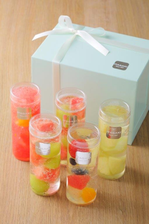 定番人気の「フルーツミックス」「シトラスミックス」に加え、季節商品の「メロン」、「スイカ&マスカット」2本がセットになったオンラインショップ限定のセット。多彩なフルーツのおいしさを詰め合わせたゼリーは、夏の手土産にも重宝する。