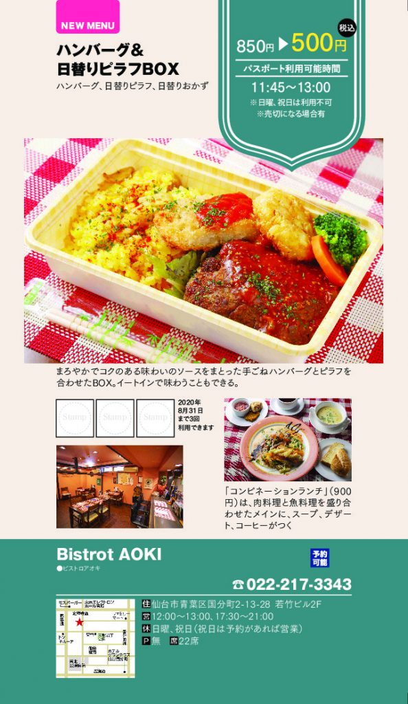 ※『ランチパスポート仙台 vol.21』に掲載している情報は、5/18時点のものです。営業時間や定休日が変更になっている場合もございますので、あらかじめご了承ください。