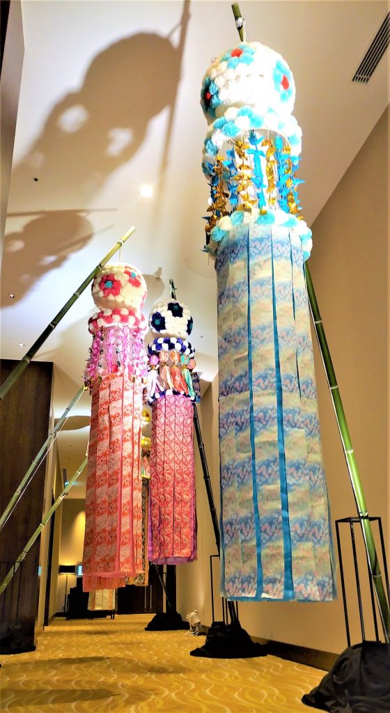 会場の入り口に足を踏み入れると…仙台の夏の風物詩、七夕飾りがずらり