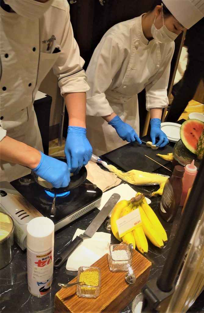 ホテルオリジナルのパッションフルーツソースやトッピングなど、好みに応じてシェフ自らがデコレーションしてくれます。なんて贅沢なホスピタリティ!