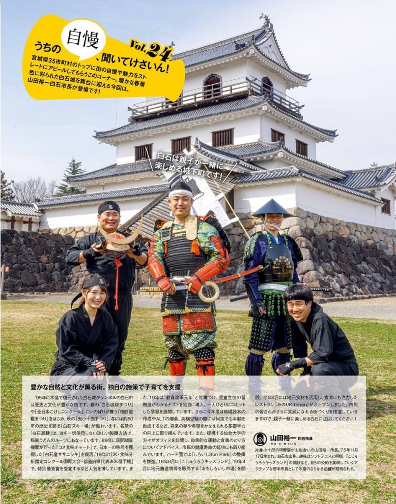 宮城県35市町村のトップに街の自慢や魅力をストレートにアピールしてもらう連載「うちの自慢、聞いてけさいん!」。S-style5月号に登場していただいたのは、白石市長の山田裕一さんです!