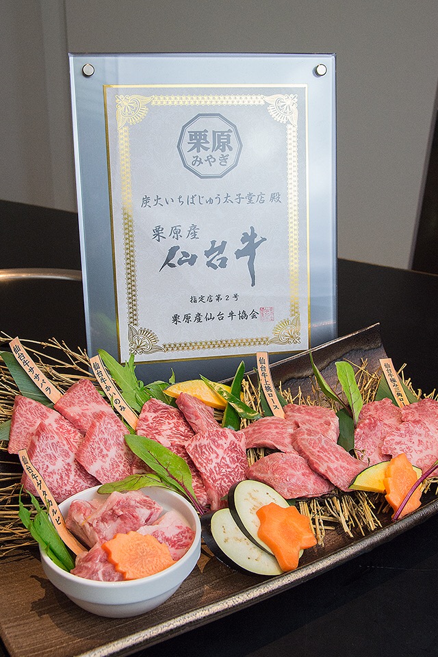 「栗原産仙台牛プレミアム盛」(7,980円)。創業時の味わい深さを守り続けている秘伝のタレをつけていただこう