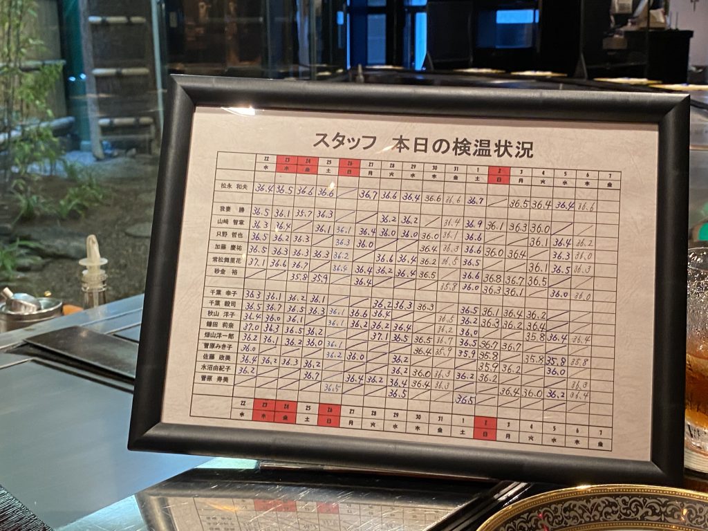 スタッフさんの体温を毎日書き込んだボードをお客さんの見えるところに設置