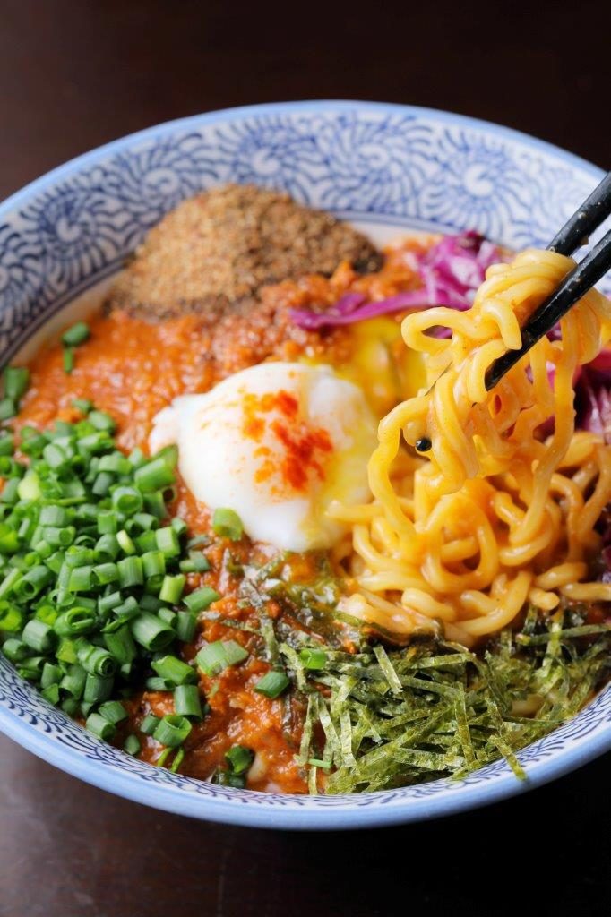 タレを絡めた太麺に、キーマカレーと魚粉、卵をトッピングした「カレー混ぜそば」(880円)もあるんです!
