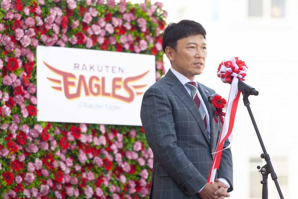 式典当日は「東北楽天ゴールデンイーグルス」マスコットキャラクターの「クラッチ」と「東北楽天ゴールデンイーグルスチェア」によるパフォーマンスが披露されました!
