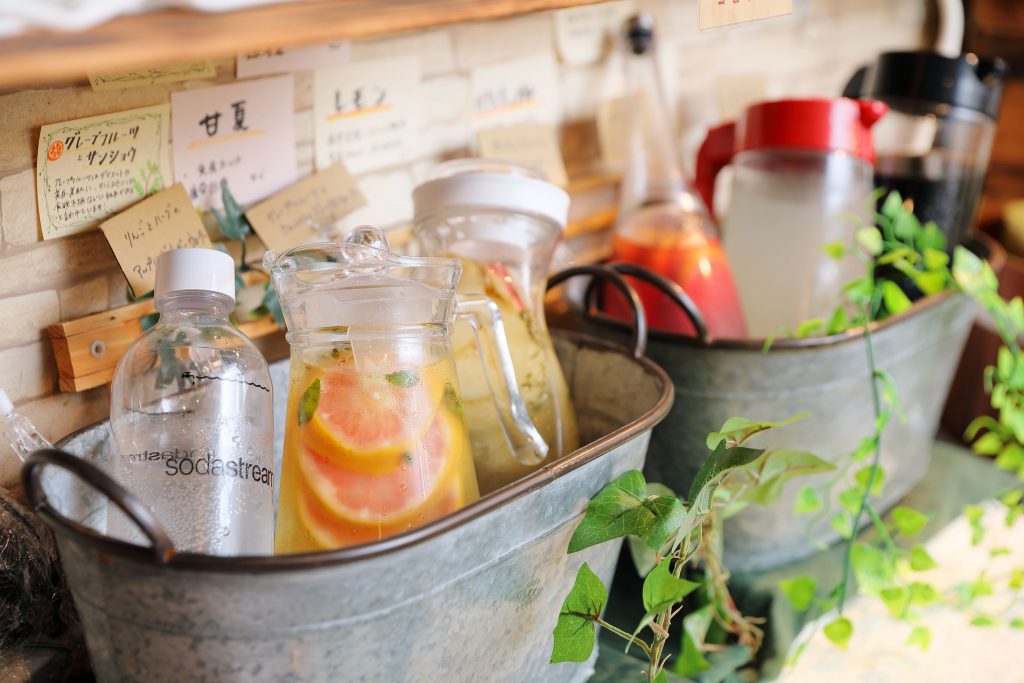 セットで楽しめるドリンクバーも種類が豊富で、デトックスウォーターをはじめこちらも身体にやさしい内容になっています。