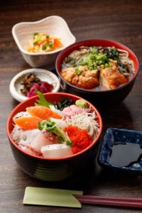 2.●P11「ハーフ海鮮丼&ハーフ旬蕎麦セット」通常880円⇒500円/地どりと旬彩 季樂(青葉区中央)