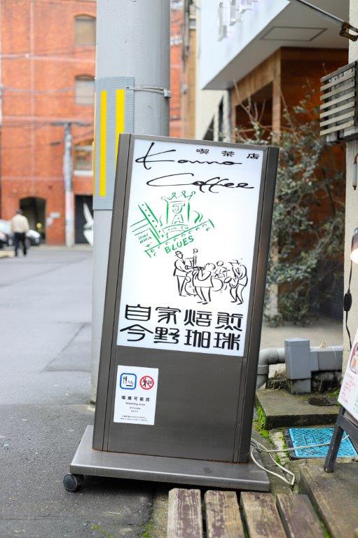 入口に掲げられたのは、音楽が好きなマスターにちなんだ店の看板。仙台の街並みによく似合う