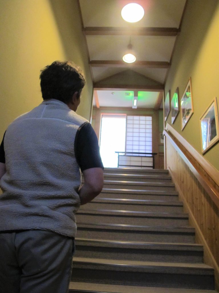 早速、竹内さんに館内を案内してもらい、峩々温泉ツアーがスタート! 窓の外には山々の豊かな自然が広がり、四季折々の表情を見せてくれます。「春~秋にかけてはトレッキングがおすすめですよ」と竹内さん。たっぷり汗をかいた後に温泉に浸かる時間は格別だろうな~。