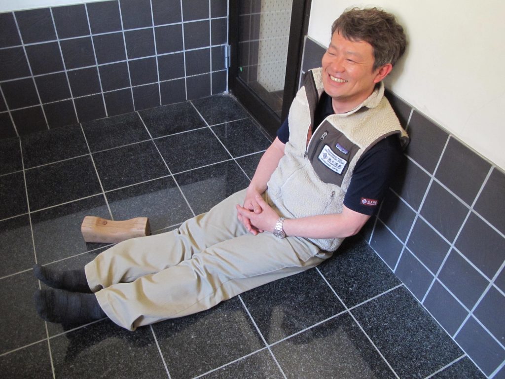 温泉を一通り見学し終わると「いちぼさん、ちょっとここに座ってみてください」と竹内さん。手招きされて向かったのはなんと岩盤浴ではありませんか! 蔵王の溶岩石を使い、上に薄い大理石を敷いているこの部屋は、じんわり身体の芯からポカポカになり心地よいのです。「長風呂は苦手という方もこの岩盤浴なら、ゆっくりと体温を上げ、代謝を上げていくことが出来ますよ」とのこと。