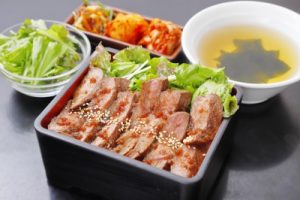 ジューシーで柔らかいUSブラックアンガス牛のミスジを使用したちょっぴり贅沢なお重。特製のタレと合わせて召し上がれ。