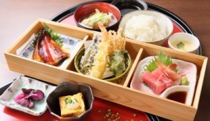 脂のりが良いウナギ、サクサクの天ぷら、季節の刺身という和食の定番を一度に堪能できる贅沢な御膳だ。