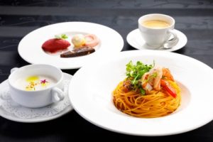 オープンから愛されていたパスタランチが期間限定で復活。写真は、オマール海老を2時間煮込んだアメリケーヌソースパスタ。また、写真は一例。