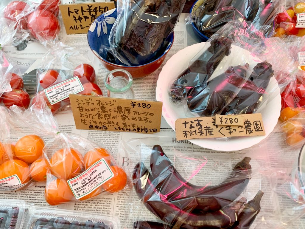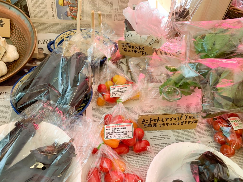 県内は秋保・沖野・川崎・色麻・山元町、そのほか岩手や北海道より。店主の芦川さんが信頼を置く生産者の野菜を取り揃えているそうです。