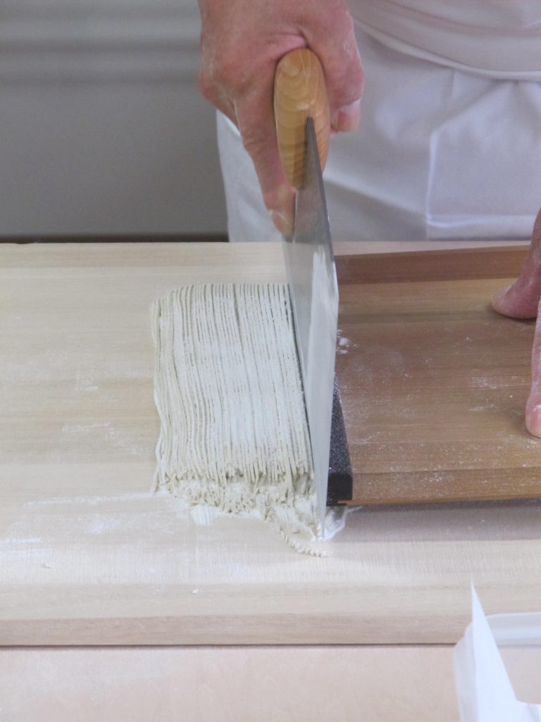 「おお~!」という歓声と共に打ち立ての美しいそばが踊ります。ふわりと漂うそばの香りに、丁度良くお腹も減ってきました…!