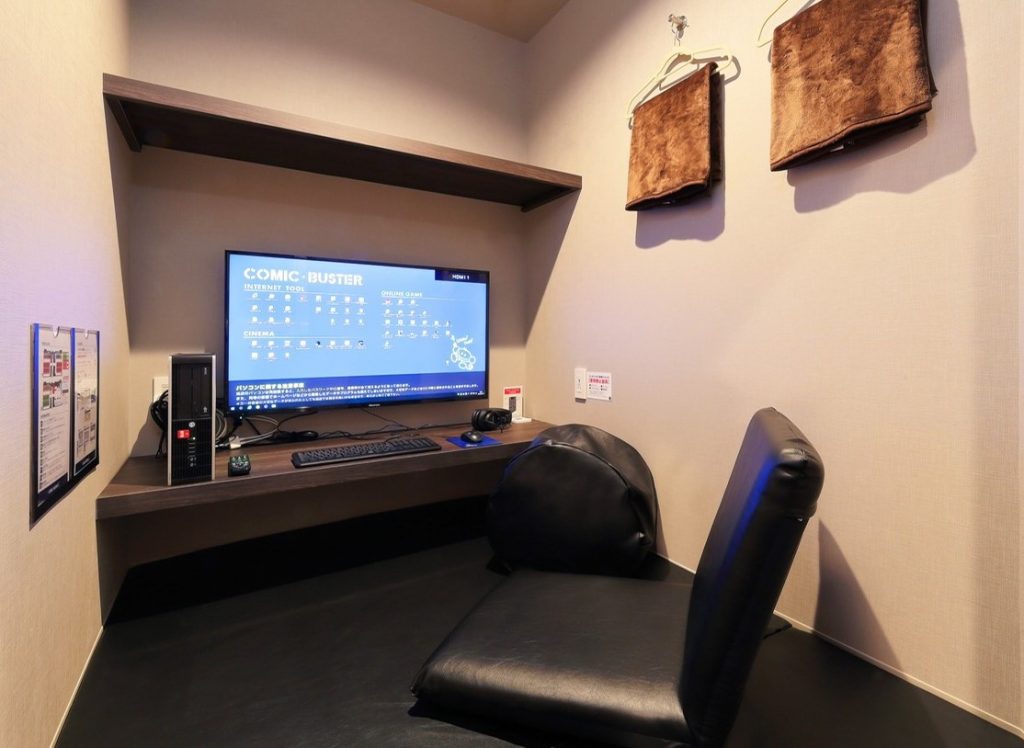 全席完全個室のインターネットカフェの『コミック・バスター仙台国分町店』。ゆったりと造られた部屋はフラット席とリクライニング席があり、全室カードキー式なので女性ひとりの利用でも安心。さらに、各部屋には個別でエアコンが付いていて、スマホ充電器も常備されているので設備も充実しています。大型モニターで最新動画を楽しむのはもちろん、勉強や仕事にも活用できるインターネットカフェです。