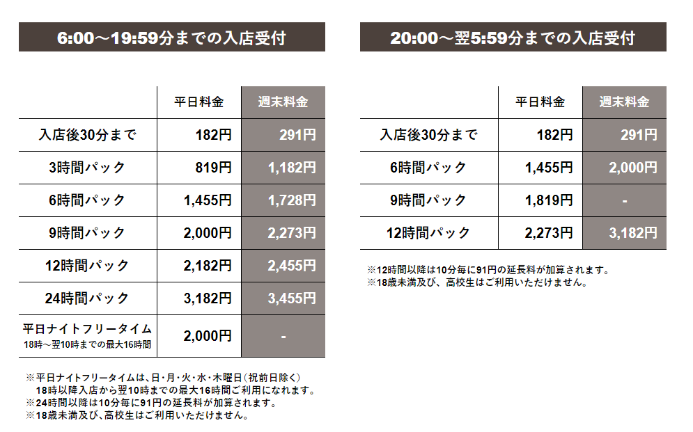 コミック・バスターのプランの中でもかなりおトクでおすすめしたいのが、平日の夜18:00~翌10:00までの最大16時間で利用できる、「平日ナイトフリータイム」(2,200円)。祝前日を除く、日・月・火・水・木曜日の18:00以降入店から対象になるのでまったりと自分の時間を過ごしたい方におすすめです。