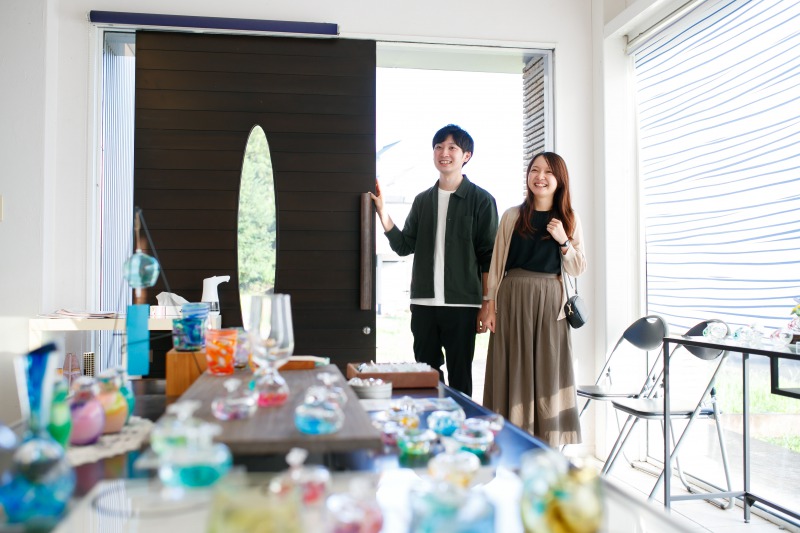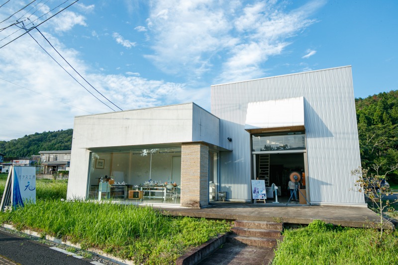 工房は秋保温泉の入り口にかかる覗き橋のすぐそば。仙台市中心部からは車で30分ほどで到着。店内には素敵なガラス作品がずらり!