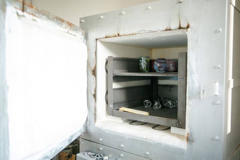 1200℃の高温で熱したガラスは、急に温度を下げると割れてしまうそう。ここは、急がば回れ。500℃の徐冷炉で一晩かけて冷やします。