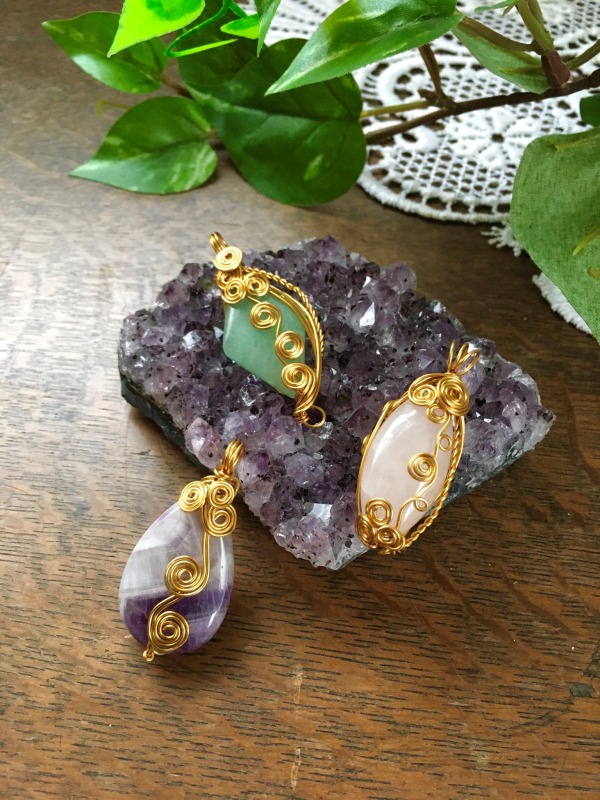 色とりどりの天然石から好きな石を選び、アーティスティックワイヤーを巻き付けてペンダントトップを制作。ワイヤーを自由に曲げて、自分だけのオリジナルデザインに仕上げよう。難しい所は先生がお手伝いしてくれるし、手ぶらで参加できるので、初心者もOK!
