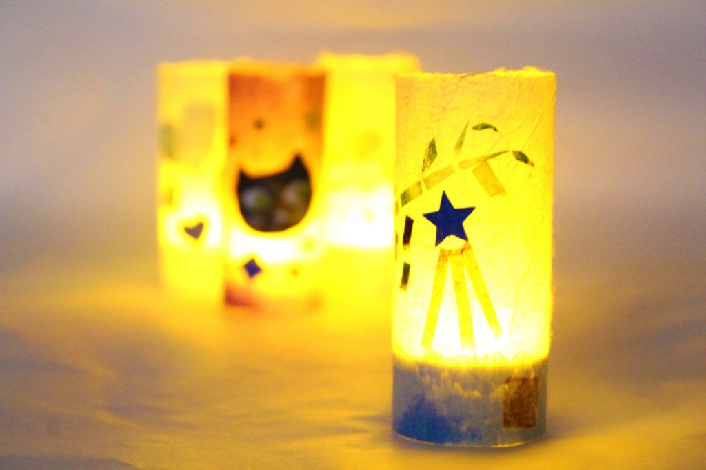 14.【ものづくり】 柳生和紙LEDキャンドル ちぎり絵体験