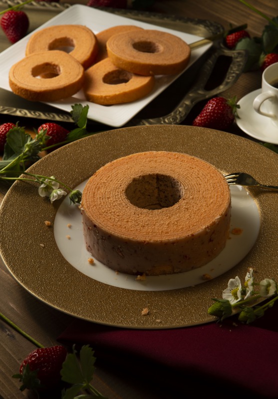 バームクーヘン製造の専用機器を使ってバームクーヘン作りに挑戦。ハンドルを回しながら生地を直火で焼き上げ、何層にも重なったら完成。出来たてを試食し、食べきれない分はお土産にしよう。
