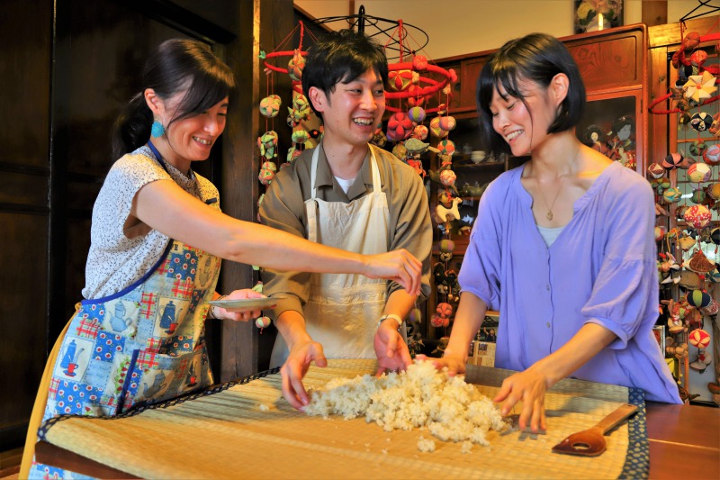 こだわりの自然栽培米を中心に手作りの麹やお菓子を販売する『すずめ農園』。こちらでは無農薬・無肥料で自然栽培された大豆と米麹で仕込む味噌作りが体験できる。1人3キロほど持ち帰り可能。自宅で1年ほど寝かせて、「手前味噌」の熟成を楽しもう!