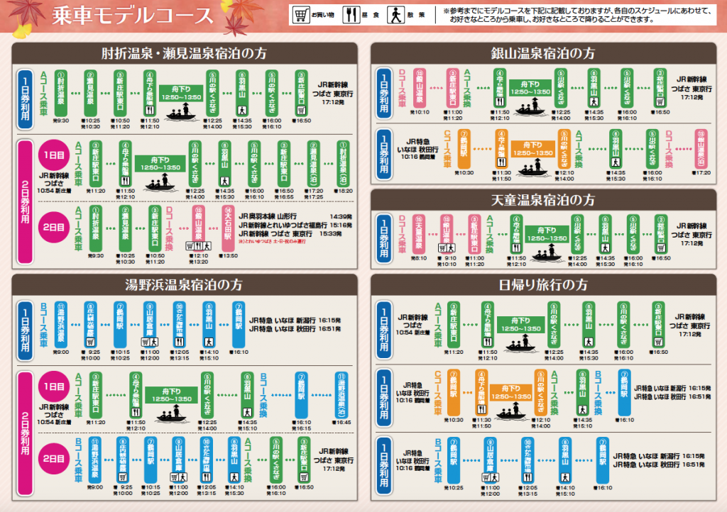 ※昼食代、舟下り料金、宿泊料金は含まれていません。各自お支払いください。
