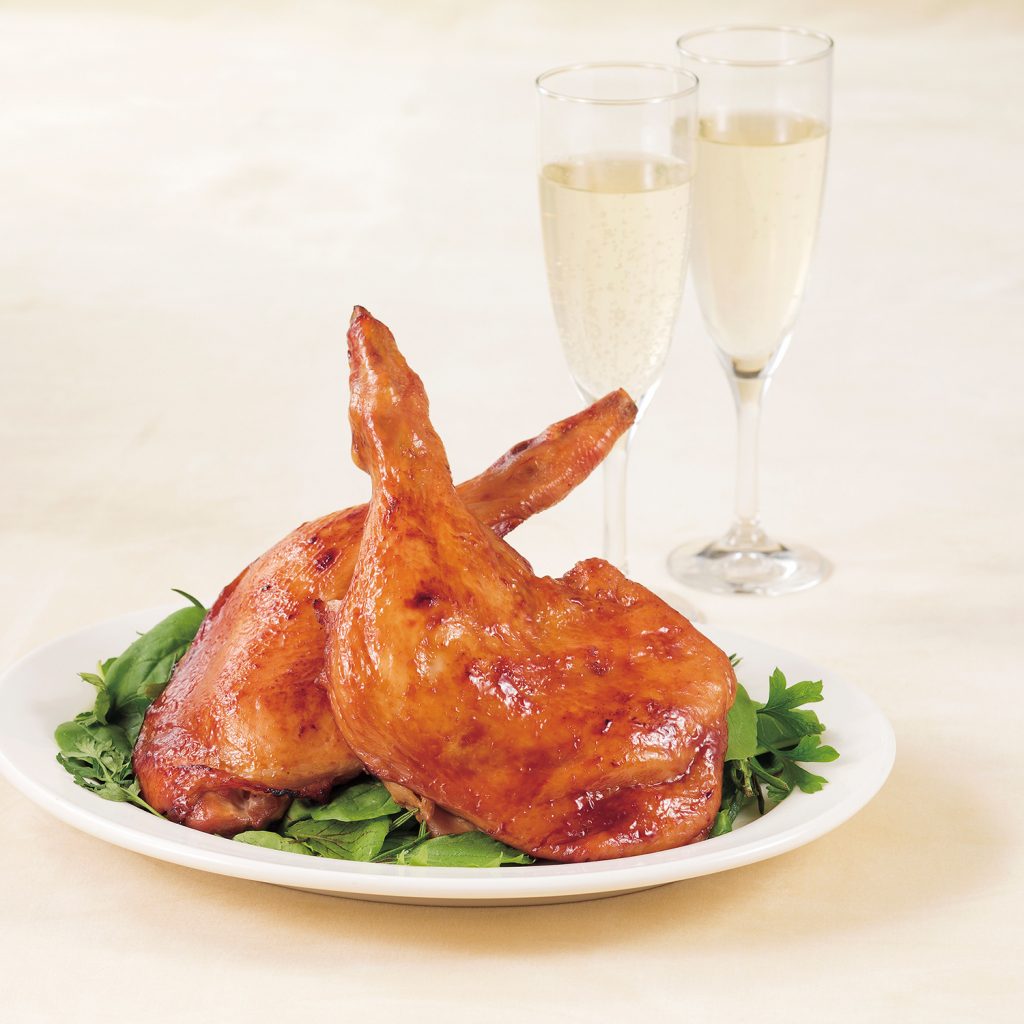 国産鶏を使用したモモ焼き。鳥専門店のモモ焼きに秘伝のタレを使用し、クリスマスパーティーにおすすめのひと品です。