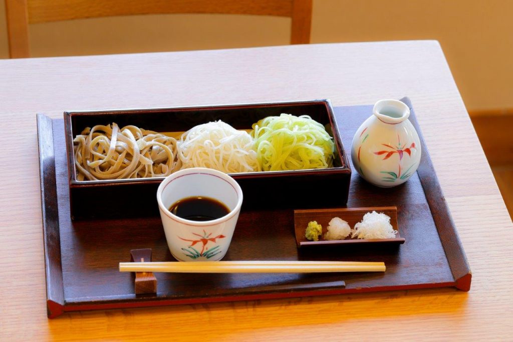 撮影時は「田舎」「白雪」と青ゆずの「ゆず切り」が登場。11月からは黄ゆずの変わりそばが登場予定。誌面では女将さんが作るそば粉のロールケーキも紹介しています!