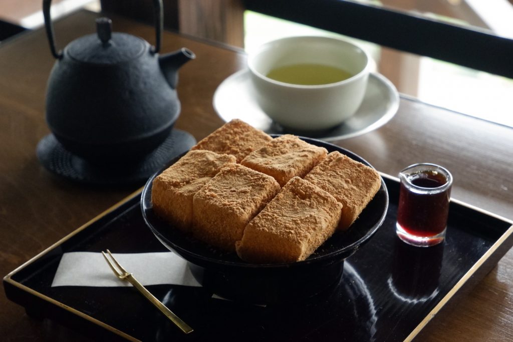 国産大豆の深煎りきなこをたっぷりとまとったわらびもちは、見るからにふるふる柔らか。口の中でとろけるような舌触りが自慢です。