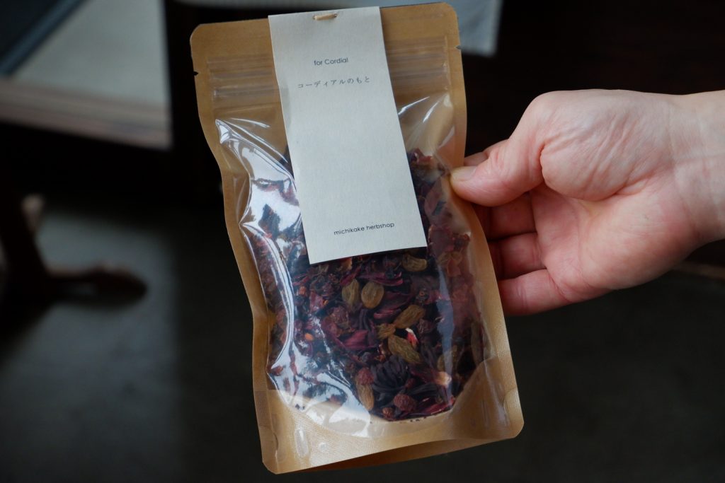 『鹿落堂』さんで使っているコーディアルは『みちかけハーブ店』さんによるもので、店内で販売も行っているんです。