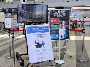 国内線手続きカウンター前のサーモグラフィで体温チェックができます