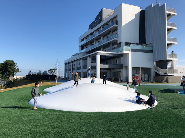 子どもたちが大好きなぼよんぼよんするやつ(巨大トランポリンみたいな感じ)もあります
