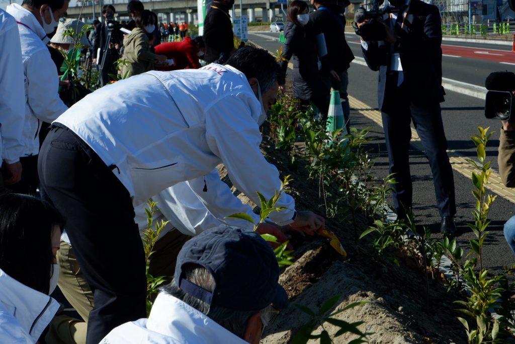 密を避けての開催のため、順次植樹がスタート。駐車場を取り囲むようにどんどん植樹が行われていきます。