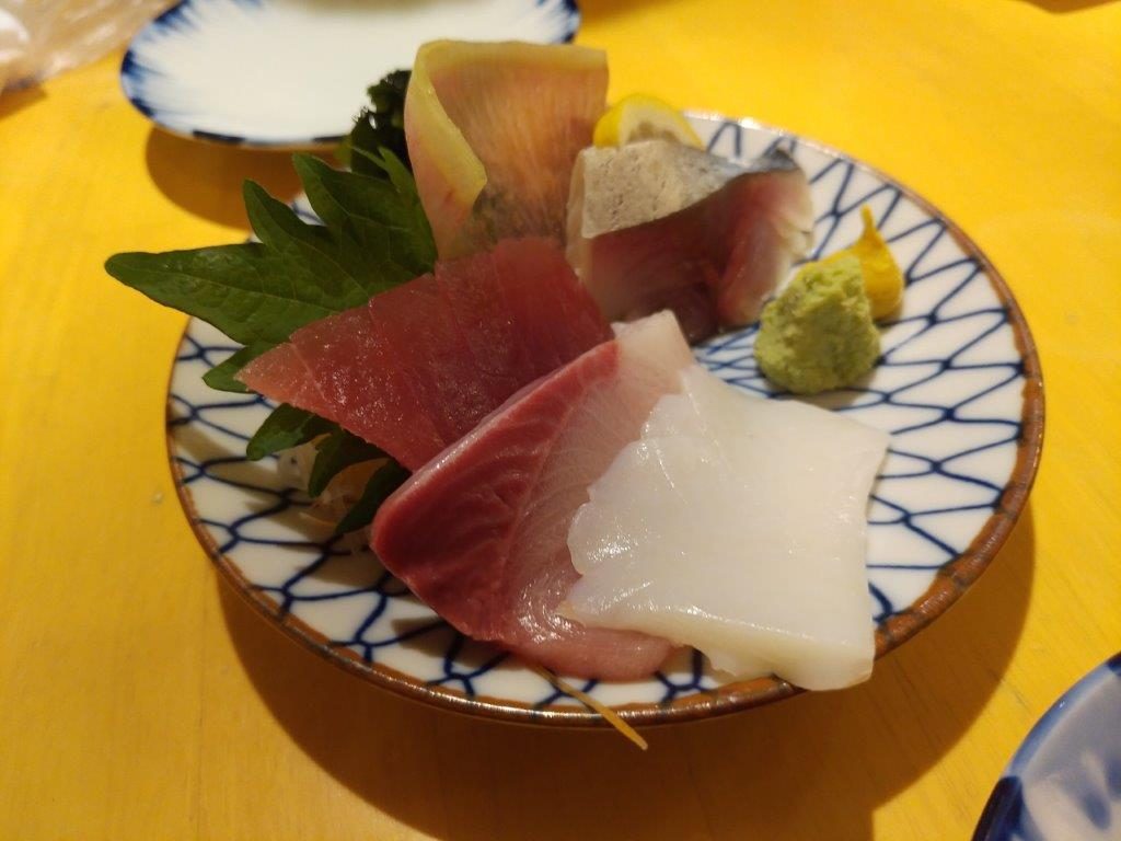 「刺身盛合せ」(1人前690円~)。旬の魚介がちょうど良いボリュームで