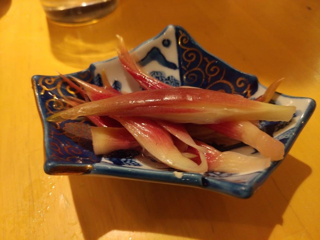 寿司に合わせて「みょうがのピクルス」(390円)も注文。酢っぱさっぱり♪