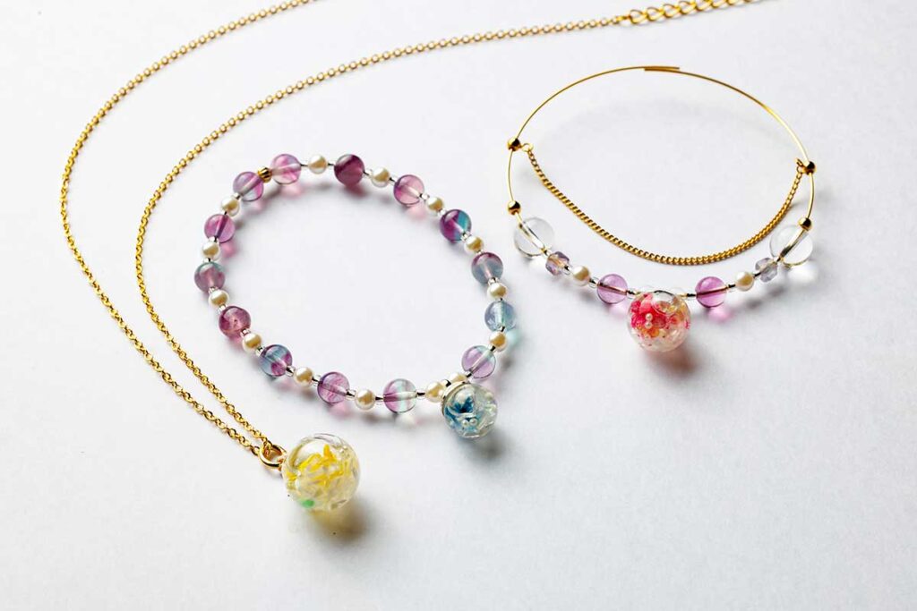 「蛍石のハーバリウムお守り」。すべて宮司による手作りのため数量限定で授与されます