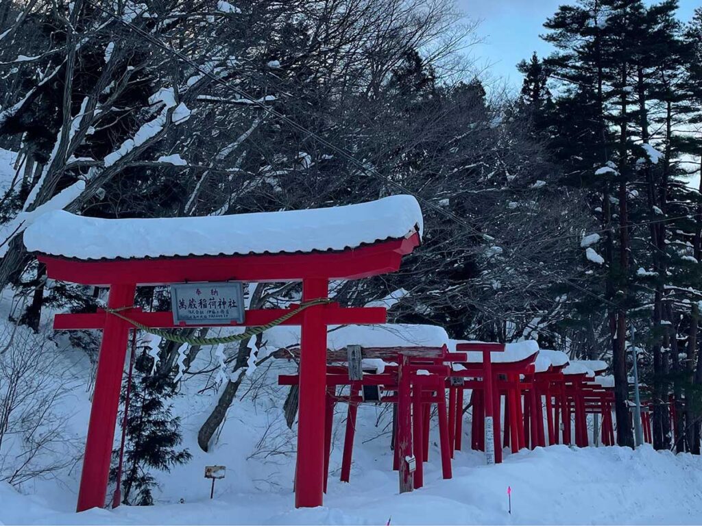 京都の伏見稲荷を思わせる無数の鳥居が連なる光景は神秘的で、県内のみならず遠方からも参拝者が訪れています。