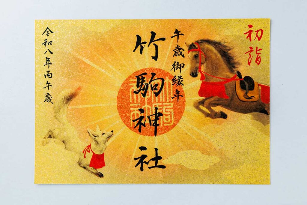 午年限定の御朱印。躍動感あふれる馬の絵柄が印象的