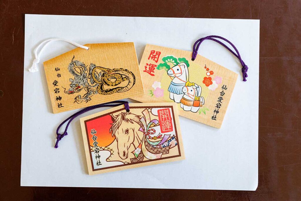 開運を願う個性豊かな絵馬。午年らしい馬をあしらったデザインも!
