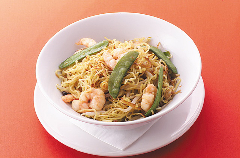 料理が出来上がるスピードの早さで昼時はサラリーマンで賑わう一軒。「XO醤海老焼きそば」は、たっぷりの海老と野菜を自家製ピリ辛XO醤で味付けした逸品だ。