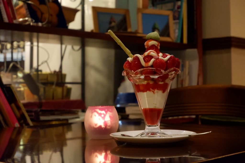 お酒が苦手な編集部あちきは仕事帰りに単独シメパフェ。写真の構図がオシャレですね