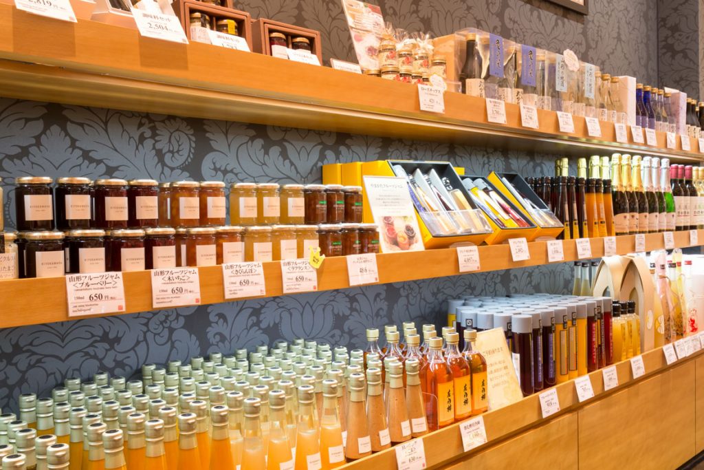 ラフランスやサクランボ、木イチゴなど5種類のジャムが揃っています。「山形の地酒飲み比べセット」「亀の尾純米大吟醸原酒」など山形の旨い地酒も目白押し!